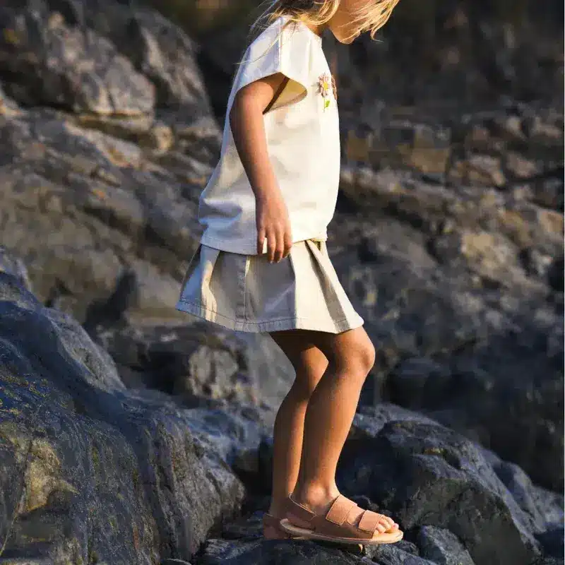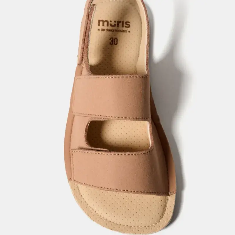 Muris Rio Junior – Dusty Pink je odprt bosonog sandal, zasnovan za brezskrbno gibanje v poletnih dneh. Lahek in zračen model omogoča naravno gibanje stopala ter zagotavlja udobje pri vsakem koraku. Zaradi treh nastavljivih ježkov se sandal popolnoma prilagodi stopalu, hkrati pa nudi varen in stabilen oprijem.