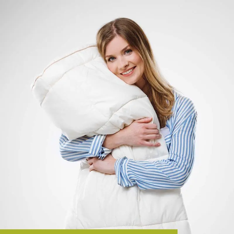 Prevleka odeje je izdelana iz 100 % nebeljenega bombaža, ki je prijeten na dotik in nežen do kože. Zaradi uporabe naravnih materialov je odeja primerna tudi za osebe z občutljivo kožo.