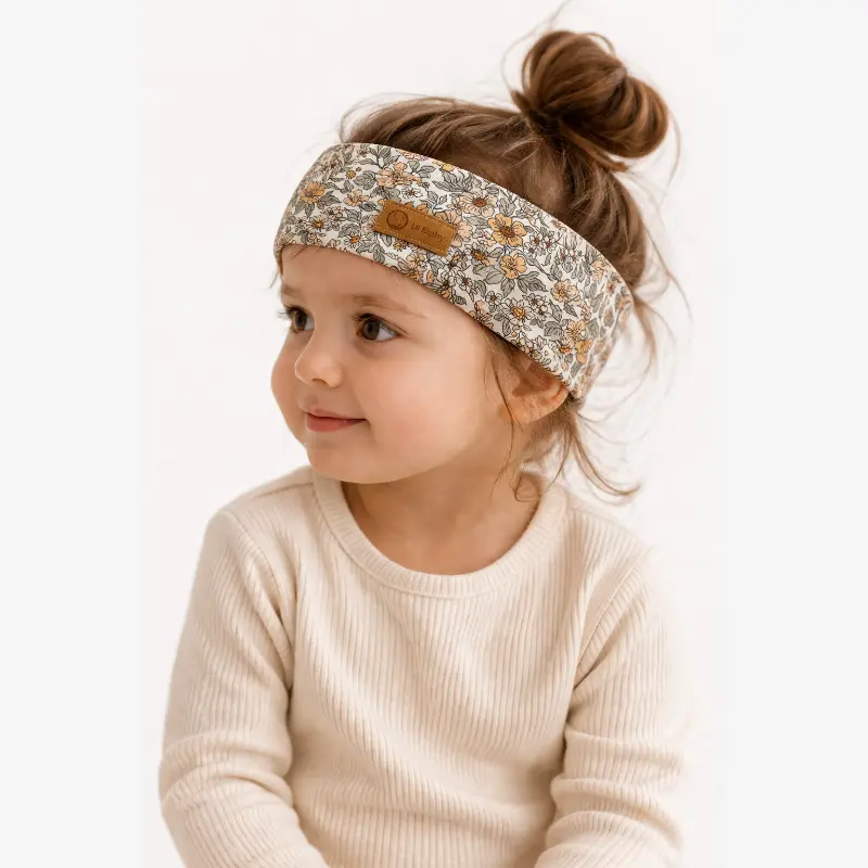 Naglavni trak Lil Elphy v bež barvi cvetja je ročno izdelan iz kakovostnega bombažnega materiala, ki je mehak, prijeten za nošenje in prilagodljiv. Zaradi dodatka elastana se lepo prilega glavi in zagotavlja udobje skozi ves dan.