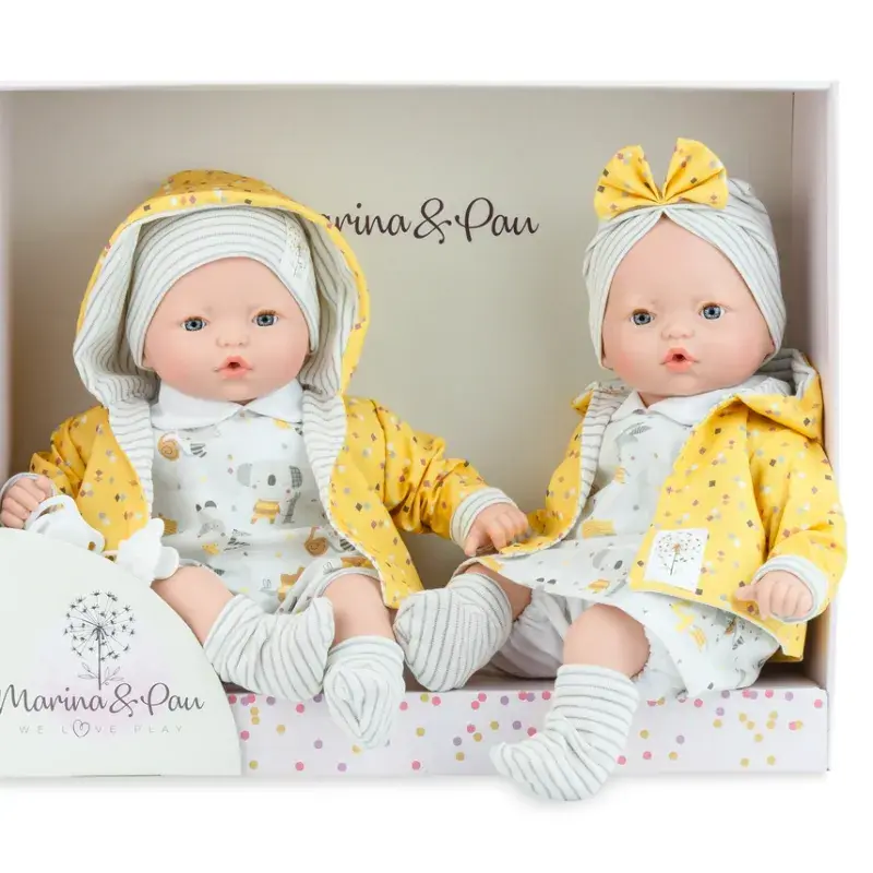 Punčki dvojčici blagovne znamke Marina & Pau sta veliki 40 cm in navdušujeta z ljubkim videzom ter kakovostno izdelavo. Obe punčki imata mehko telo, glava in okončine pa so izdelane iz kakovostnega vinila, ki je prijeten na otip.