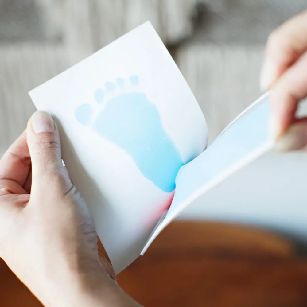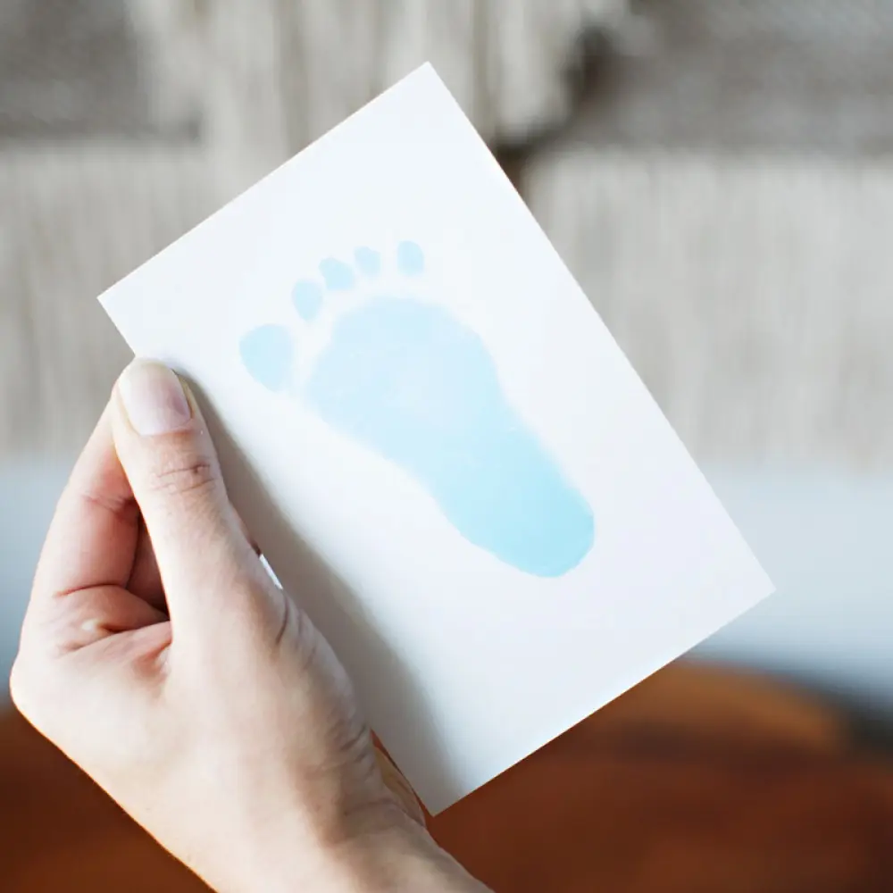 Odtis se bo prenesel na kartico, medtem ko bo dojenčkova koža ostala popolnoma čista. Po uporabi pustite odtis sušiti 1 do 2 dni, nato pa ga lahko uporabite za izdelavo trajnega spominčka.