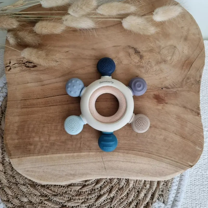 Večbarvno roza grizalo Rammelaartje je praktičen pripomoček za obdobje izraščanja zobkov. Izdelano je iz kombinacije naravnega bukovega lesa in 100 % varnega silikona za dojenčke, zato je prijetno za grizenje, mehko, prožno in enostavno za držanje v majhnih rokicah.