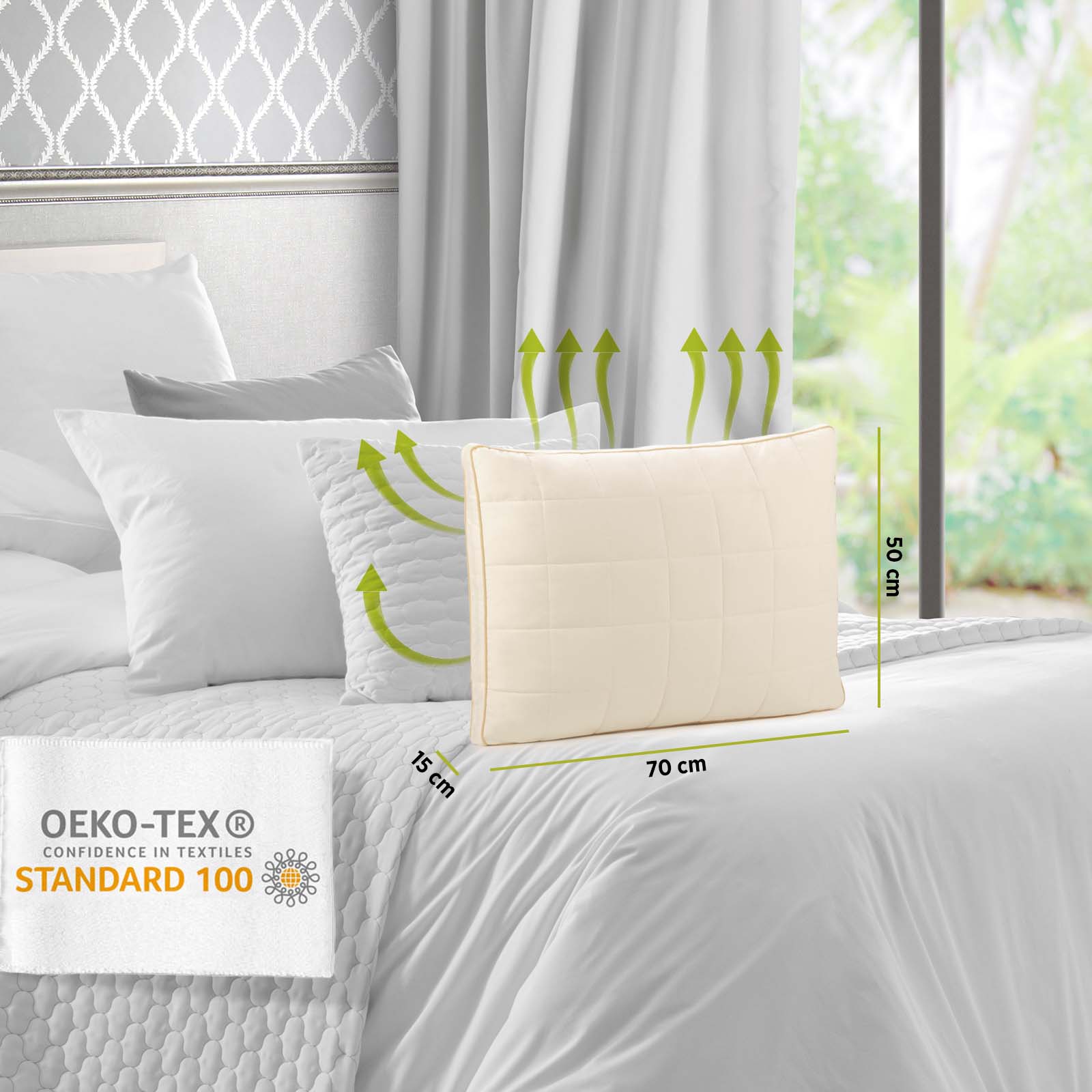 Vzglavnik je primeren tudi za alergike, astmatike ter vse z občutljivo ali problematično kožo. V celoti je pralen na 60 °C in primeren za sušenje v sušilnem stroju.